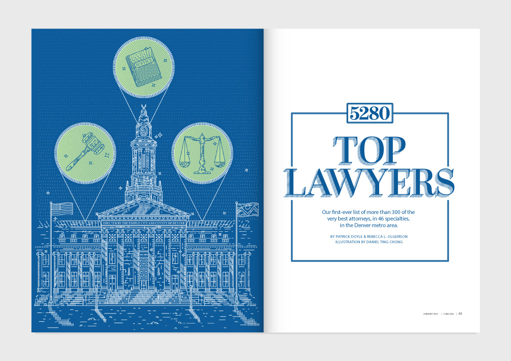 Commissioned to illustrate Denver's City Hall with corresponding spot illustrations for 5280 Magazine. Art Director: Amanda Croy