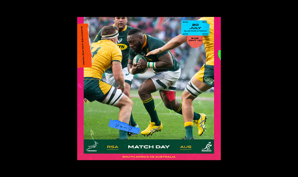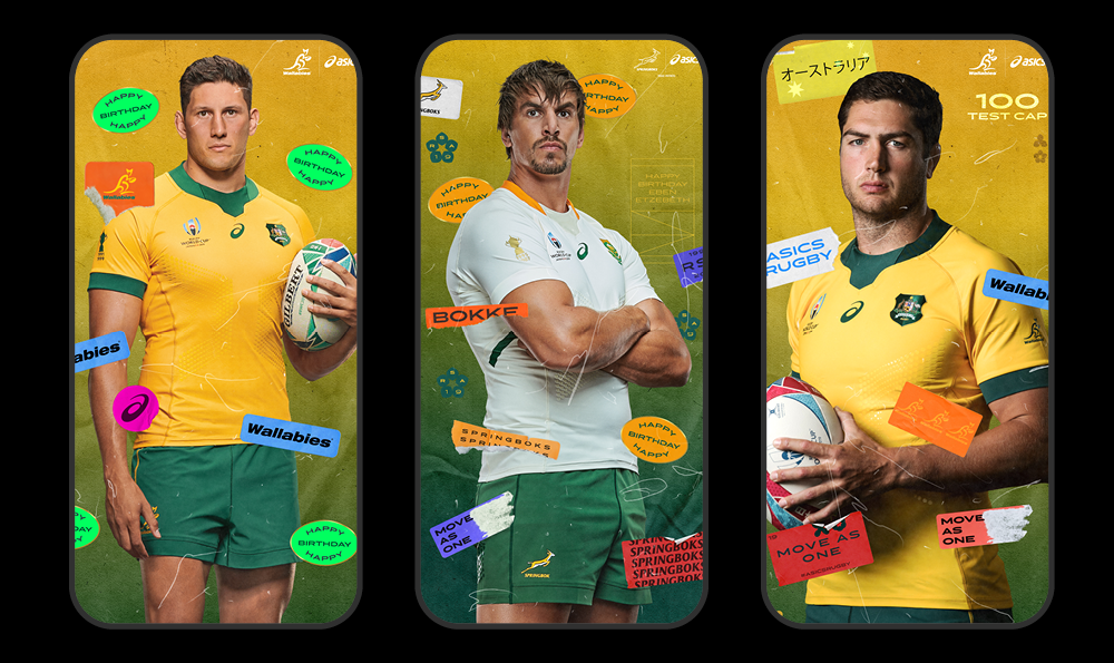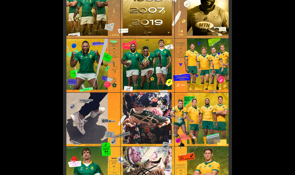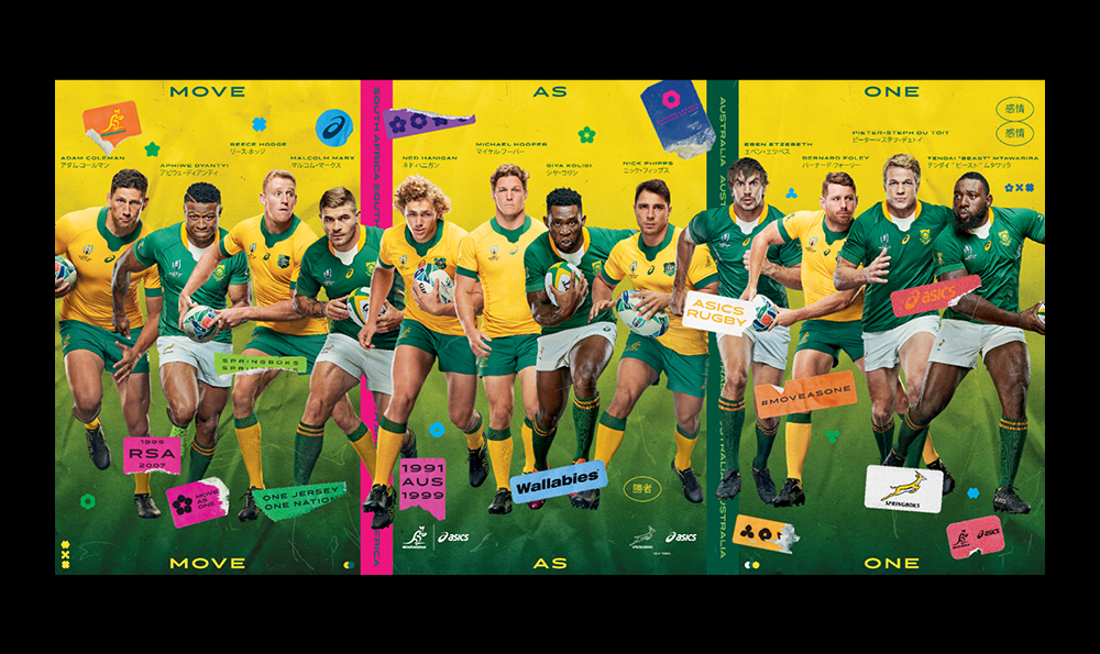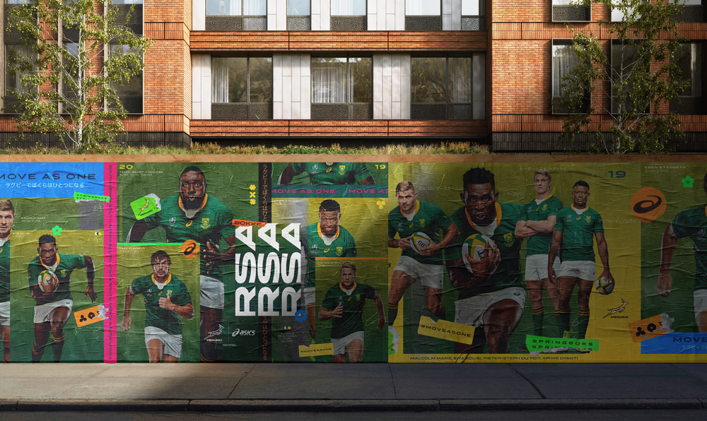 I am honoured to have worked on the ASICS 'Move As One' Campaign that was commissioned through 'All These Things Agency' on behalf of ASICS. The campaign was focused on the South African Springboks rugby team as well as the Australian Wallabies for the Rugby World Cup in Tokyo 2019. The deliverables were to create the look and feel that celebrated the tagline, 'Move As One', and pay homage to Japan. The campaign was focused on Instagram but had instore retail and shop front components, too. The Instagram posts interacted with one another by having overlapping graphics and animations to celebrate 'Move As One', resulting in one consolidated feed. The campaign featured jersey and boot launches, team announcements, and game-day artwork for scores and updates. The campaign was also utilised for billboard artwork at the famous Shibuya crossing in Japan where it featured the Springboks. Producers: Wesley Tam & Malherbe Pelser / Animation: Nathan Fourie (Rodeo Productions) / Photography: Smith & Daniels / Video: Fell + Company