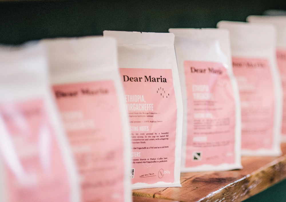 Dear Maria is an espresso and pátiserrie bar based in Johannesburg, South Africa. They passionately source, prepare and serve only the highest quality coffee roasted from various hand-picked micro-roasters around the world. The name derives from the client dedicating the establishment to his mother, Maria. The bar is a metaphoric written letter to Maria, which is the driving concept that resulted in the branding assets and is symbolically represented through the use of a stamp. I worked with my wife, Samantha Shan, to conceptualise and develop the interior space. In further dedication to the client’s mother, Samantha conceptualised a space that is raw in materiality, while retaining a sense of homeliness that feels ‘lived in’ but modern. To complement the colours derived from the brand identity, the material palette is centred around the use of raw reclaimed timber and speckled terrazzo. The terrazzo is featured in the custom made countertops that has embedded within it the colours aligned with the brand. Photos: Alexi Portokallis & Roarke Bouffe