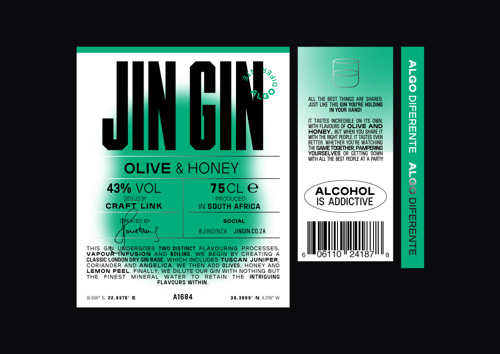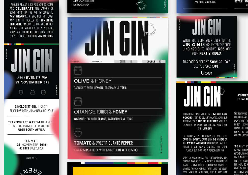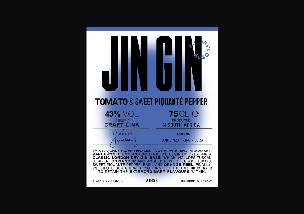 Jin Gin is the brainchild of local musician and chef J’Something. Jin Gin is produced by Ginologist, the people who make the best Gins in South Africa. J’Something is a blend of Portuguese and South African; all of the flavours would be inspired by his unique heritage. The variants within the collection include rooibos, orange & honey; tomato & sweet piquant peppers & honey & olives. Photography: Donovon Thorne, Kgabo Legora & Daniel Ting Chong Food Stylist: Elise Ruddle Copywriter: Paul White Animator: Nathan Fourie Website: Andrew Cowley